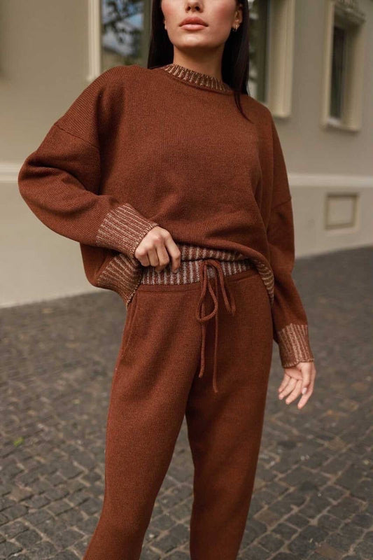 MILAVA Crew-Neck Cashmere Sweater in Brown