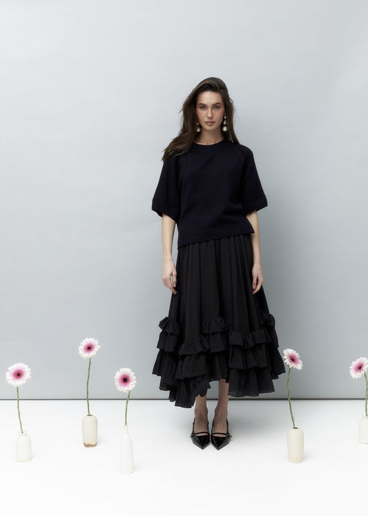 ZHADANA V-Neck Cashmere Sweater in Navy