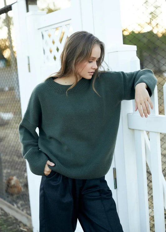 ZORIANA Crew-Neck Cashmere Sweater in Dark Green