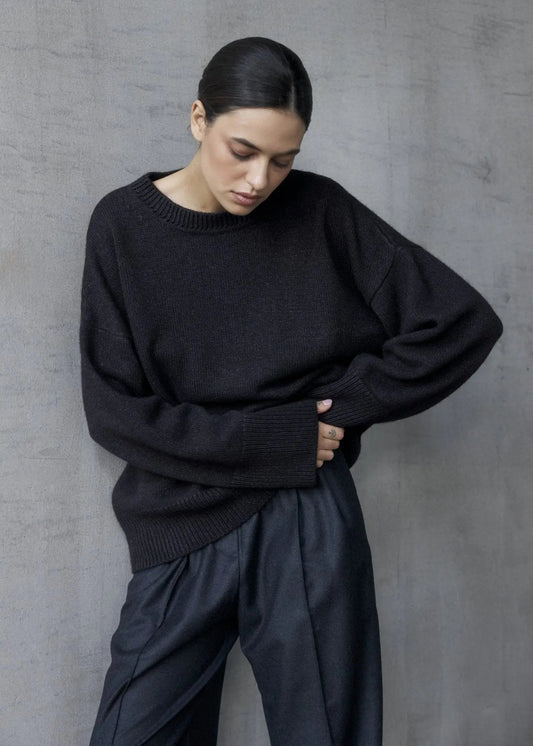 ZORIANA Crew-Neck Cashmere Sweater in Black
