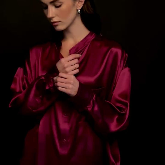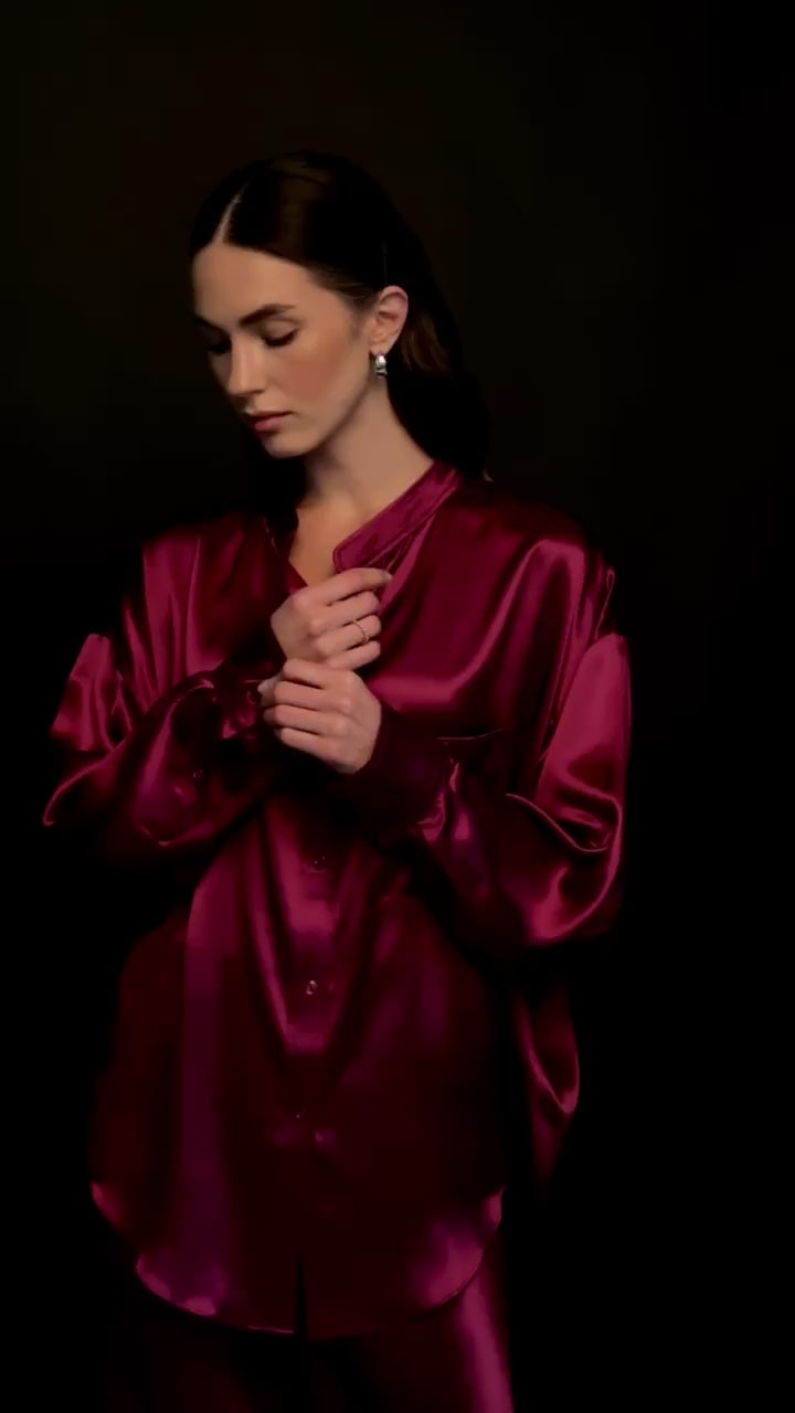 Pure Silk Blouse with Trousers Set in Burgundy