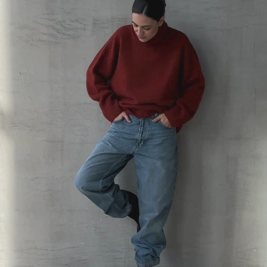 Discover timeless luxury with our Large Oversize Sweater ZORIANA, crafted from Superior Italian Cashmere. This whisper-soft, densely knit sweater offers lasting warmth and minimal pilling, thanks to long fibers spun. Its relaxed silhouette ensures effortless elegance.