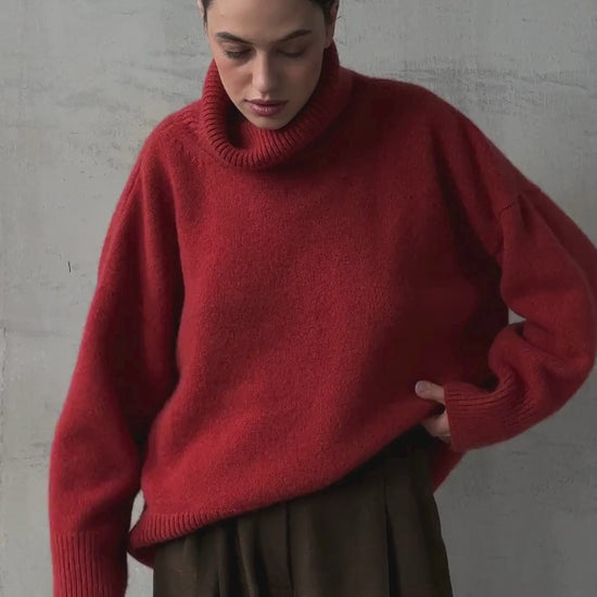 Discover timeless luxury with our Large Oversize Sweater ZORIANA, crafted from Superior Italian Cashmere. This whisper-soft, densely knit sweater offers lasting warmth and minimal pilling, thanks to long fibers spun. Its relaxed silhouette ensures effortless elegance.