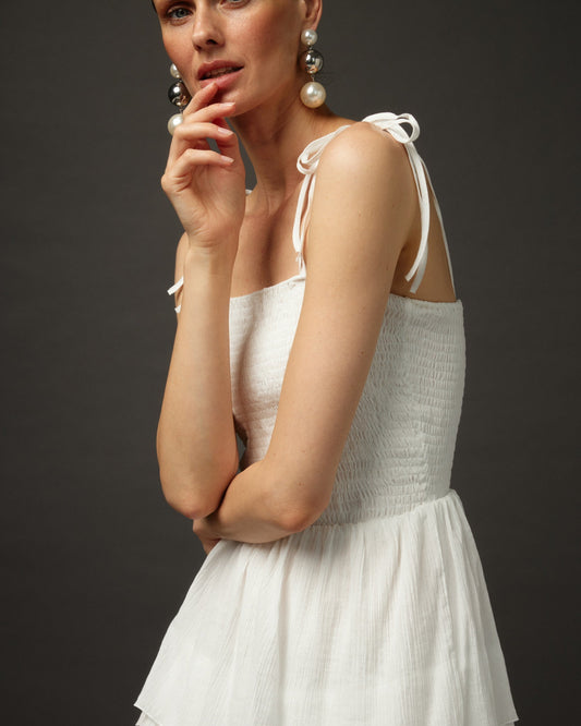 Довга бавовняна сукня на тонких бретелях із рюшами "Paris" у білому кольорі