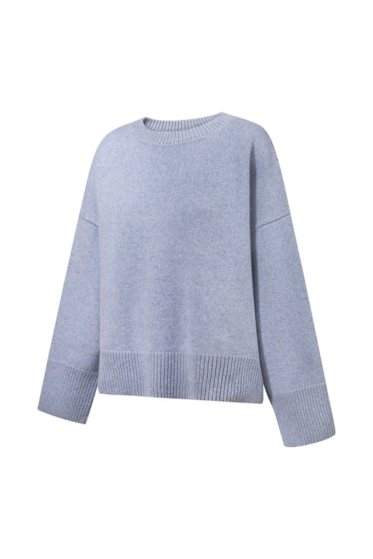 Кашеміровий светр ZORIANA з круглим воротом у джинсовому блакитному